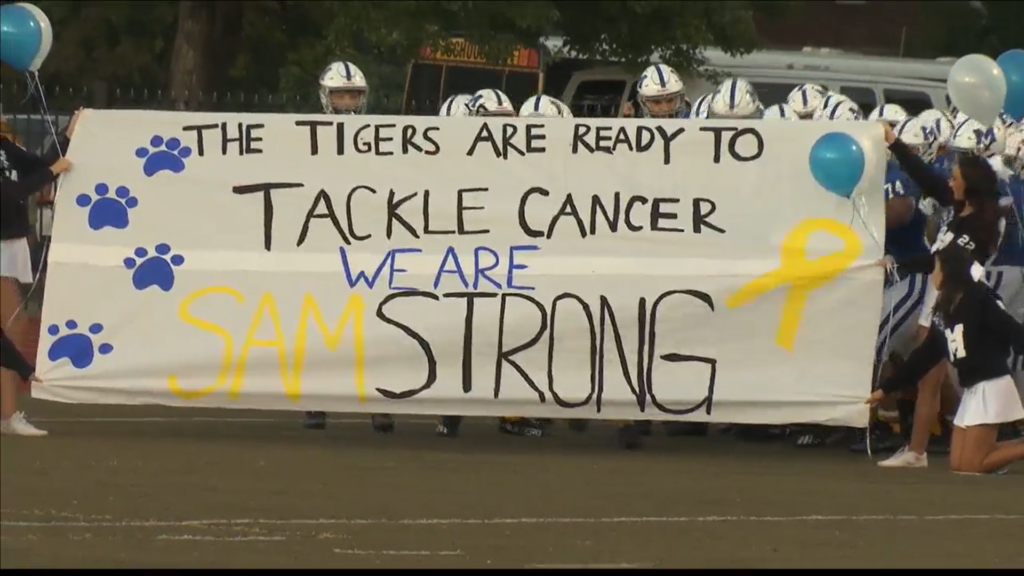 The show of support at the SamStrong football game was overwhelming! A huge “Thank you!” to the students, faculty, parents, and especially Coach John Hurley, for keeping the spirit of SamStrong alive and for purchasing and continued wearing of your SamStrong shirts. It was a special year, as Sam sent a rainbow to Enlow Field as we were setting up for T-shirt sales. Forever SamStrong! Forever a Memorial Tiger!